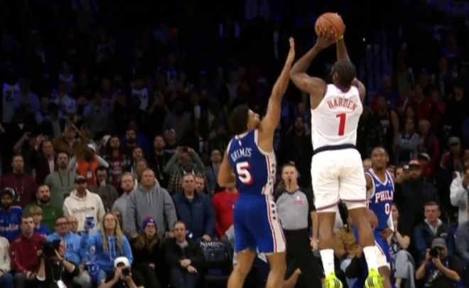 主裁详解哈登三分被打手为何不吹:裁判认为格莱姆斯是合法干扰